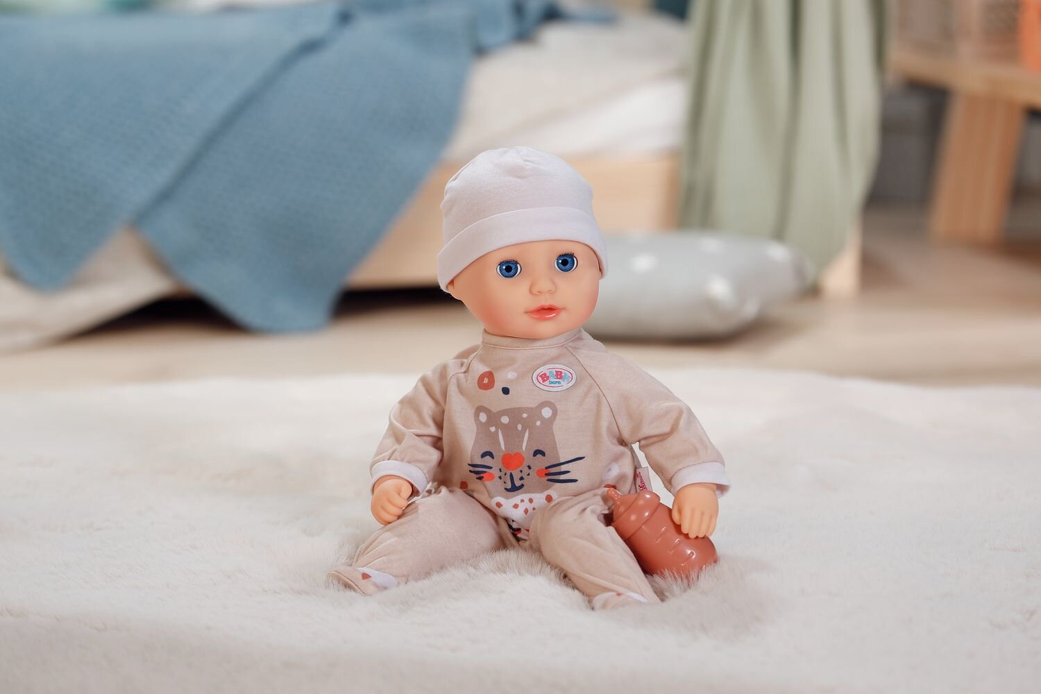 Kromě lahvičky má Anna jednoduché béžové dupačky s roztomilým potiskem tygříka. Roztomilý design a pečlivě zpracované detaily dělají z oblečku opravdový originál. Čepička celý komplet krásně doplňuje a dělá z Anny perfektní společnici pro každé dobrodružství a mazlení.