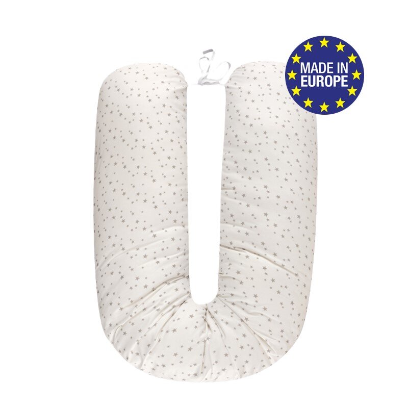 Univerzální polštář je možné používat od prvních dnů kojení až do prvních krůčků. Konce se dají stáhnout pomocí šňůrky, aby polštář lépe držel na svém místě. Potah je vyroben z příjemné bavlny, je možné jej sejmout a vyprat.