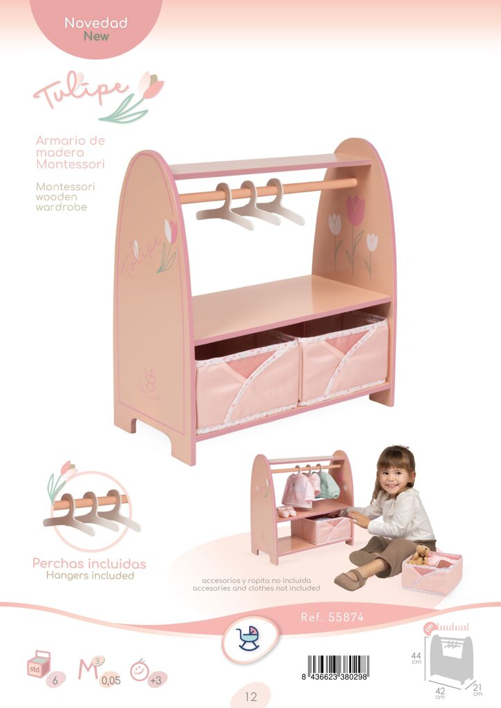 DeCuevas 55874 Dřevěný šatní věšák na oblečení pro panenky Tulipe 2025
