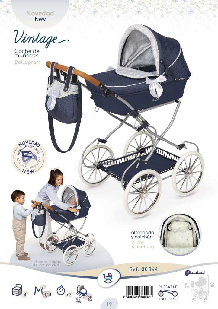 DeCuevas 80044 Skládací kočárek pro panenky s taškou Vintage 2025 - 81 cm