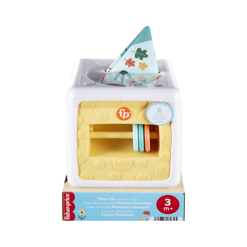 Zábavná krabička na kapesníky od Fisher-Price® pomáhá vašemu děťátku naučit se vkládat a vytahovat a díky vysoce kontrastním barvám napomáhá nejranějšímu vývoji zraku.