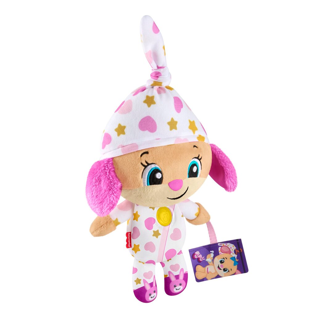 Plyšová hračka Hebká sestřička se zvuky z řady Směj se a Poznávej! od Fisher-Price pomáhá malým dětem se zklidnit pomocí zábavných písniček, zvuků a frází.
