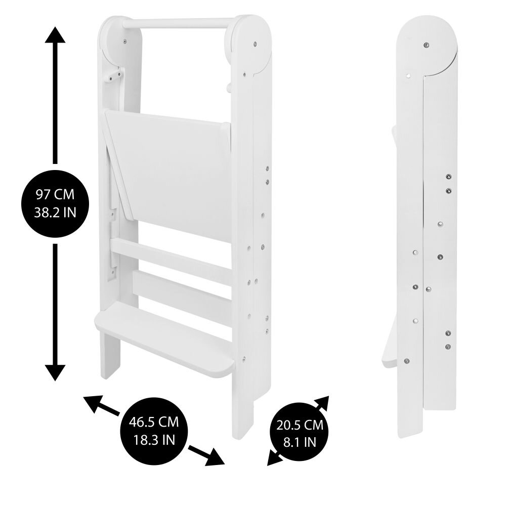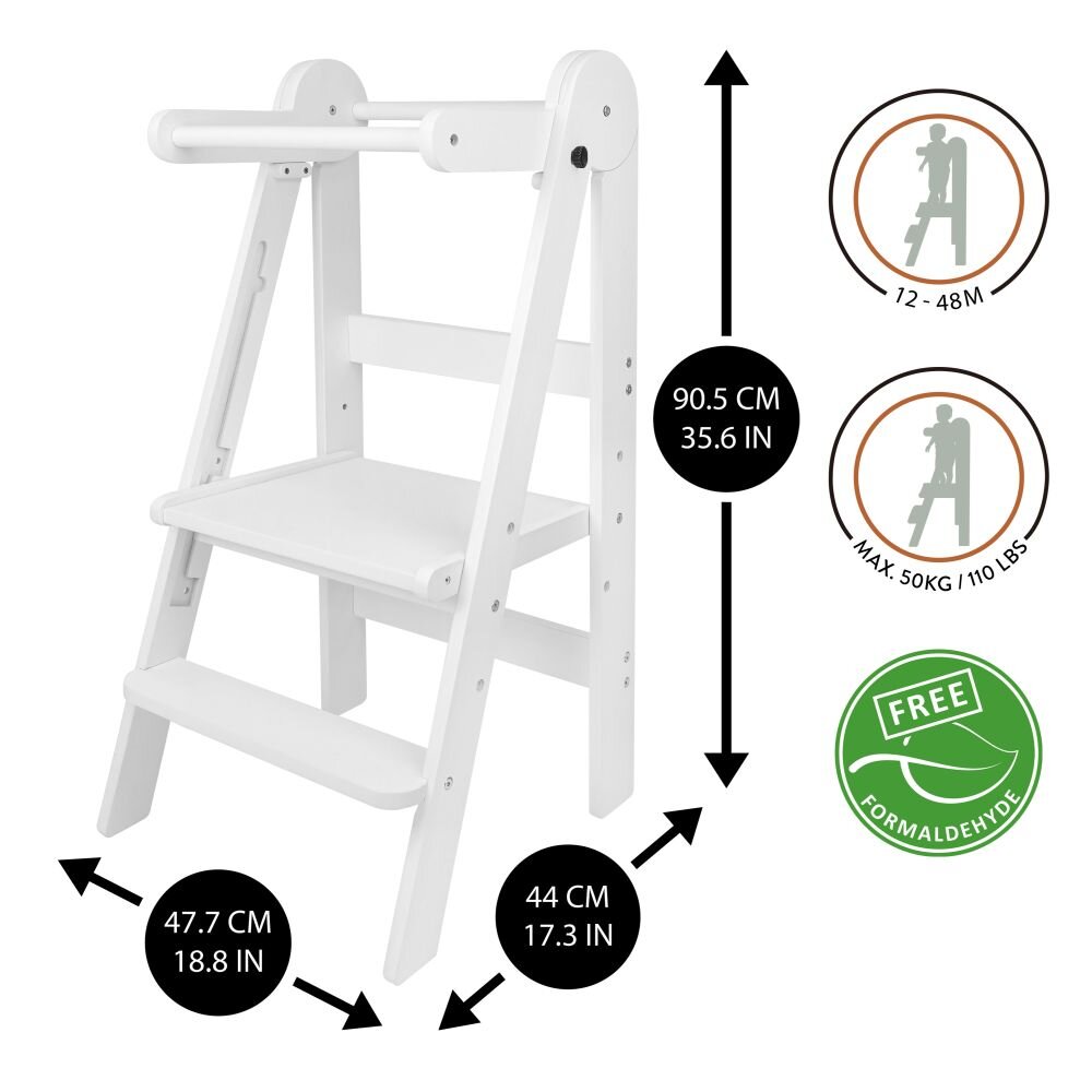 VŠESTRANNÉ: Výška věže je navržena tak, aby se vešla na většinu kuchyňských desek nebo do koupelny. umyvadla. SKLADACÍ: Tato věž je skládací, snadno se přenáší z kuchyně do koupelny a šetří místo při skladování.