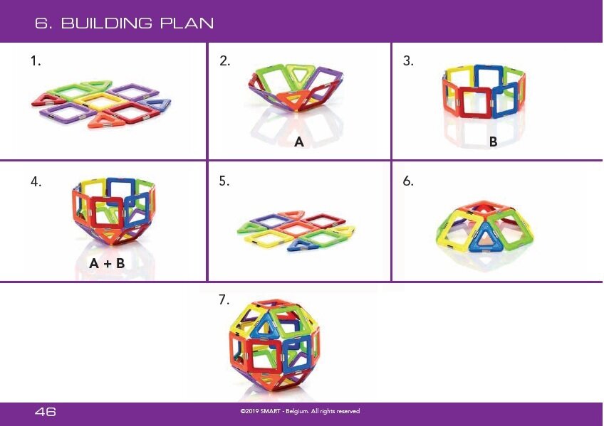 Balení obsahuje také 62stránkovou brožuru s úkoly pro děti. Úkoly mají různé úrovně náročnosti a děti se dík nim budou hravě učit tvary a barvy, práci s geometrickými tvary ve 2D i 3D perspektivě a sestavování modelů podle předlohy.