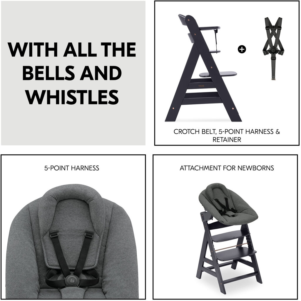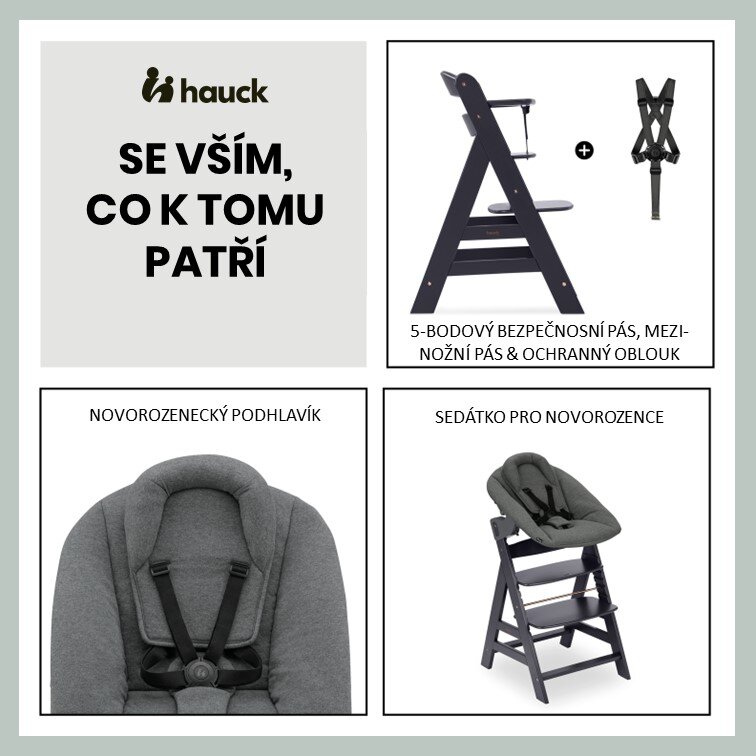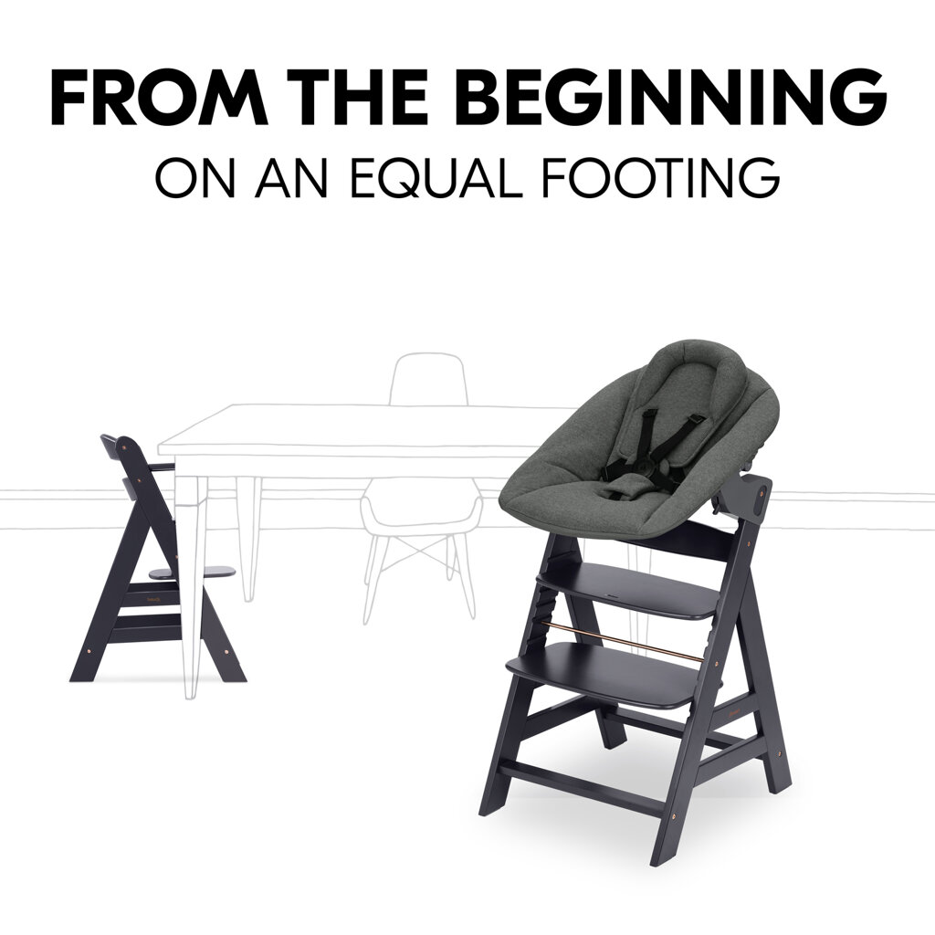 Hauck Alpha+ dřevěná židle+novorozenecký set polohovací, 0m+, Dark Grey