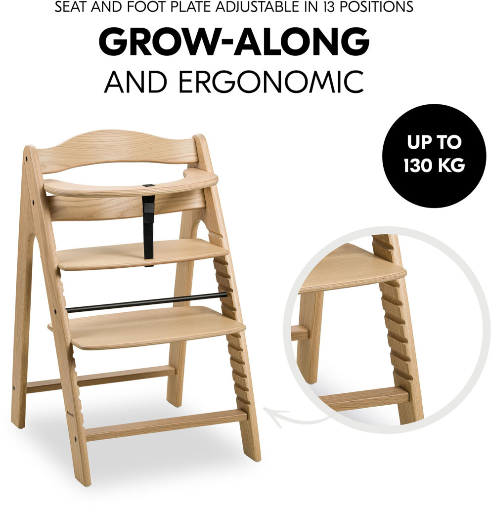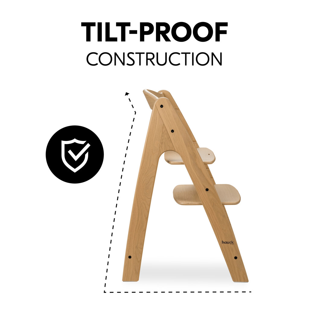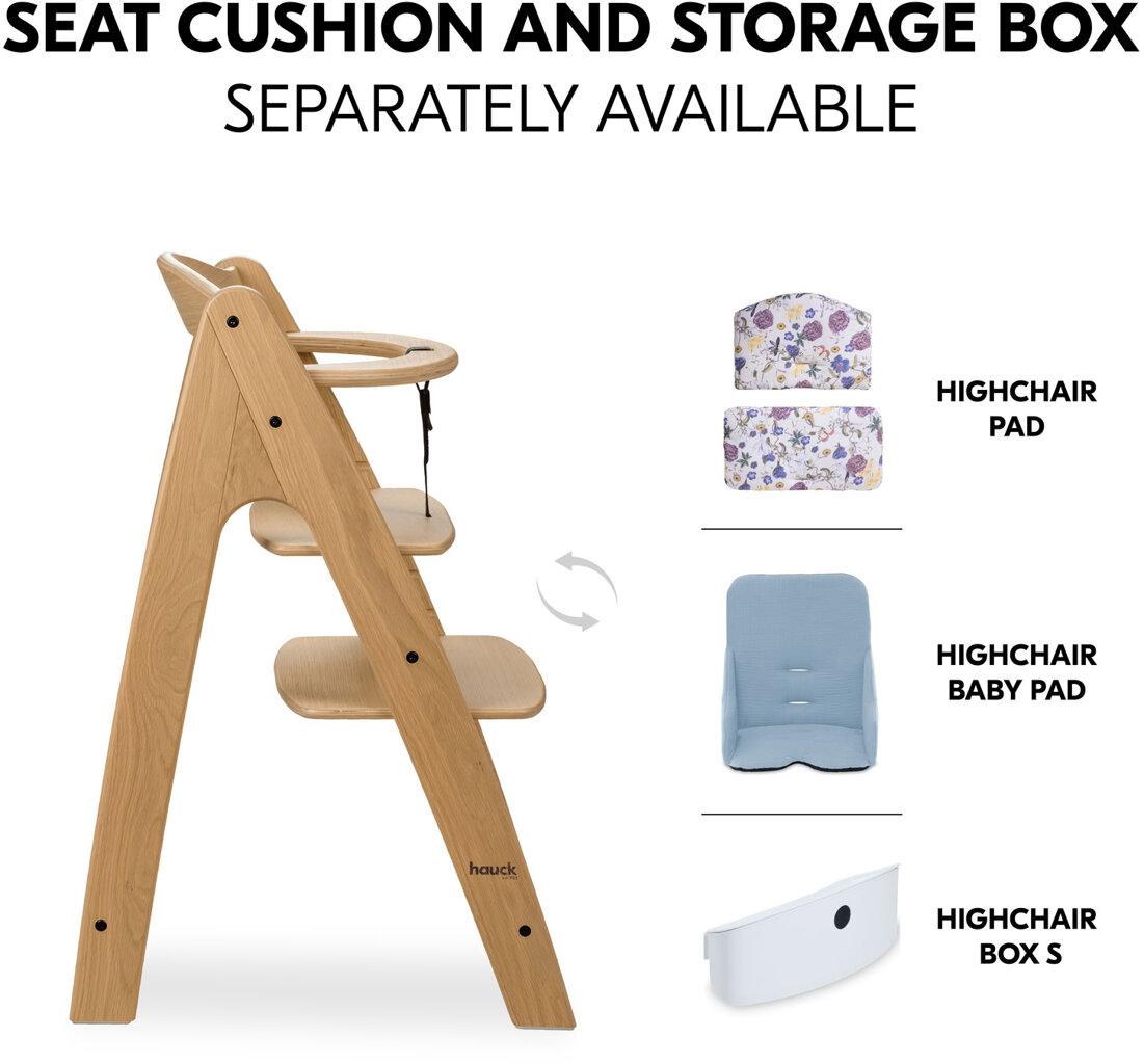 Zásadní funkce jídelní židličky Hauck Arketa Dub masiv