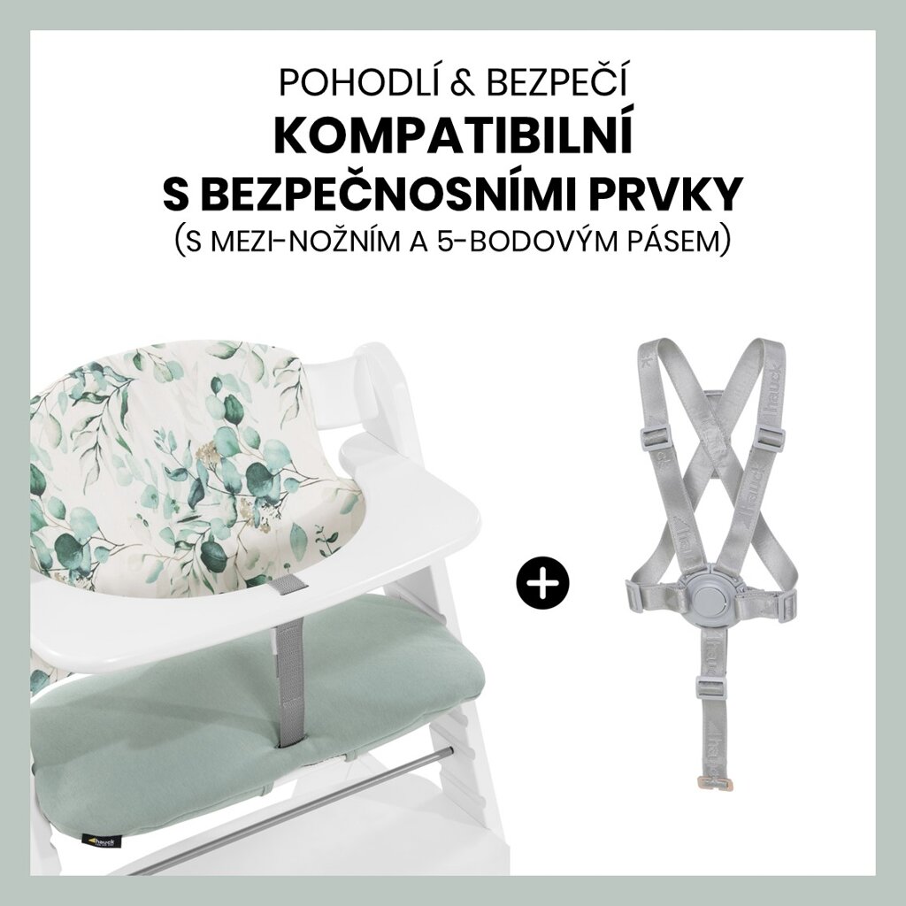 Polstrování HAUCK Select je pohodlné vylepšení Vaší dřevěné jídelní židličky HAUCK Alpha+, Beta+ a Arketa. Extra polstrovaná záda poskytují děťátku opravdové pohodlí při stolování i při hraní. Spodní strana polstrování sedátka je opatřena protiskluzovou vrstvou. Ta zabraňuje sklouznutí sedátka během zábavy a hraní. Polstrování lze kombinovat s dalšími doplňky jako je pult, nebo úložný box – vše se k sobě báječně hodí! Polstrování je plně kompatibilní s těmito bezpečnostními prvky tak, aby vaše děťátko mohlo být vždy v pohodlí a bezpečí – v každém věku! Polstrování lze snadno připevnit k vysoké židličce. Žerzejová verze se připevňuje pomocí háčku a poutka; mušelínová verze pomocí patentek. A pokud je potřebujete vyčistit – stačí je hodit do pračky.