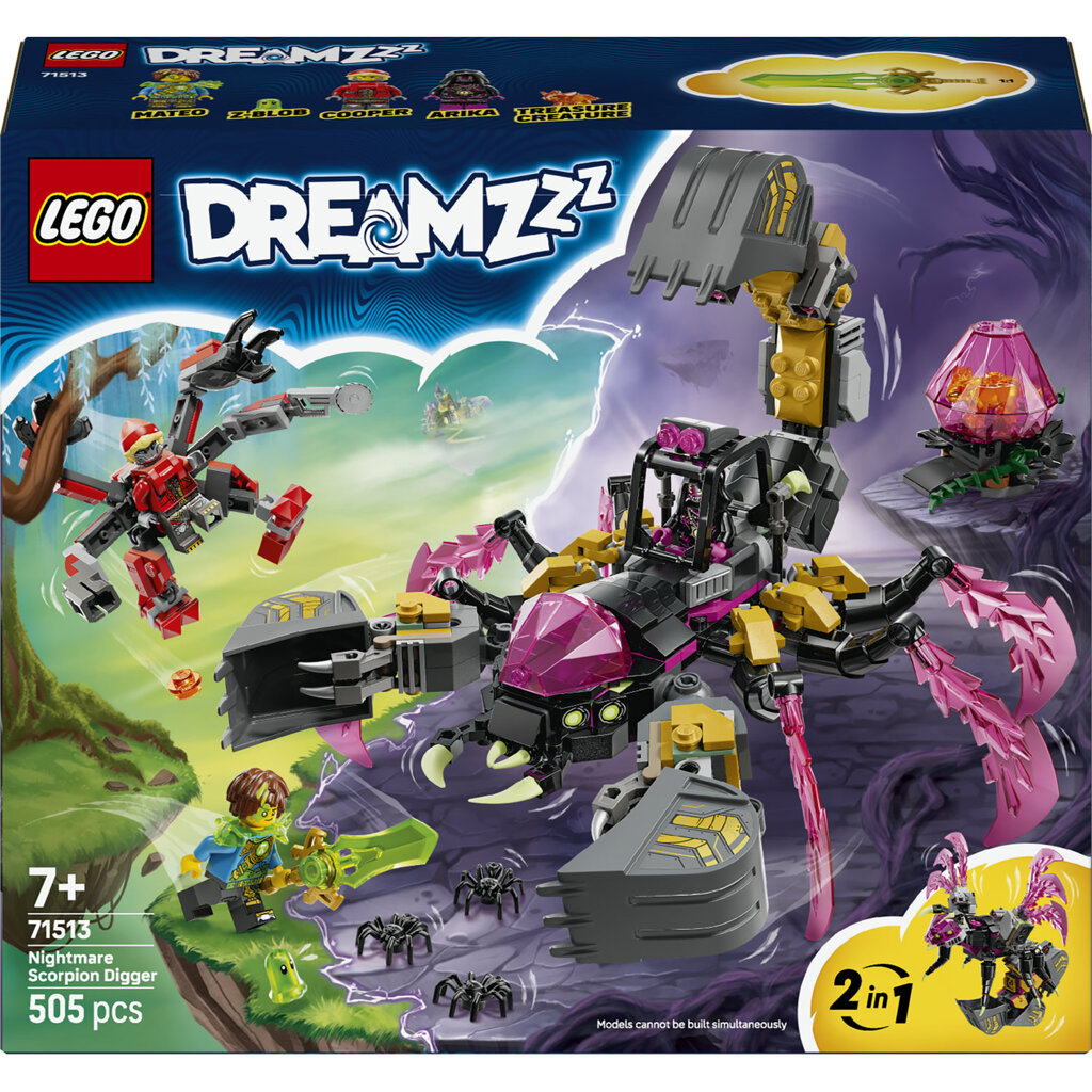 - ŠKORPION A VOSÍ RYPADLO – Zažehněte jiskru dětské fantazie se stavebnicí LEGO® DREAMZzz™ Škorpioní rypadlo z nočních můr (71513) pro kluky a holky od 7 let