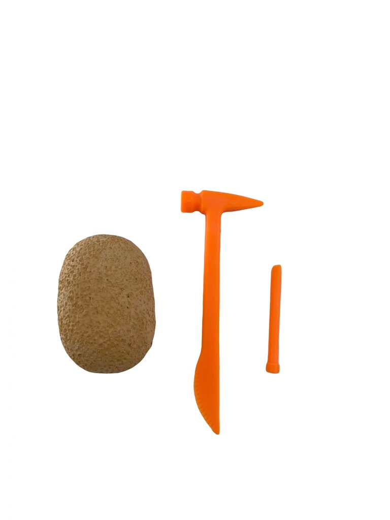 Obsah balení: Sada obsahuje sádrový "kámen" s ukrytou figurkou dinosaura a nástroje pro vykopávky.