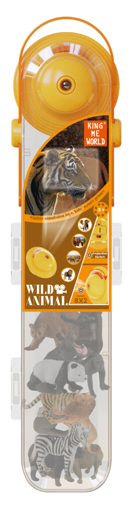 - Projektor s divokými motivy: Hlavní součástí sady je projektor, který po vložení jednoho ze dvou přiložených kotoučů promítá na stěnu nebo strop obrázky divokých zvířat. Projektor je navržen tak, aby se dětem snadno ovládal. Každý kotouč obsahuje sadu barevných obrázků známých zvířat ze safari, jako je panda, lev, slon, hroch a další.