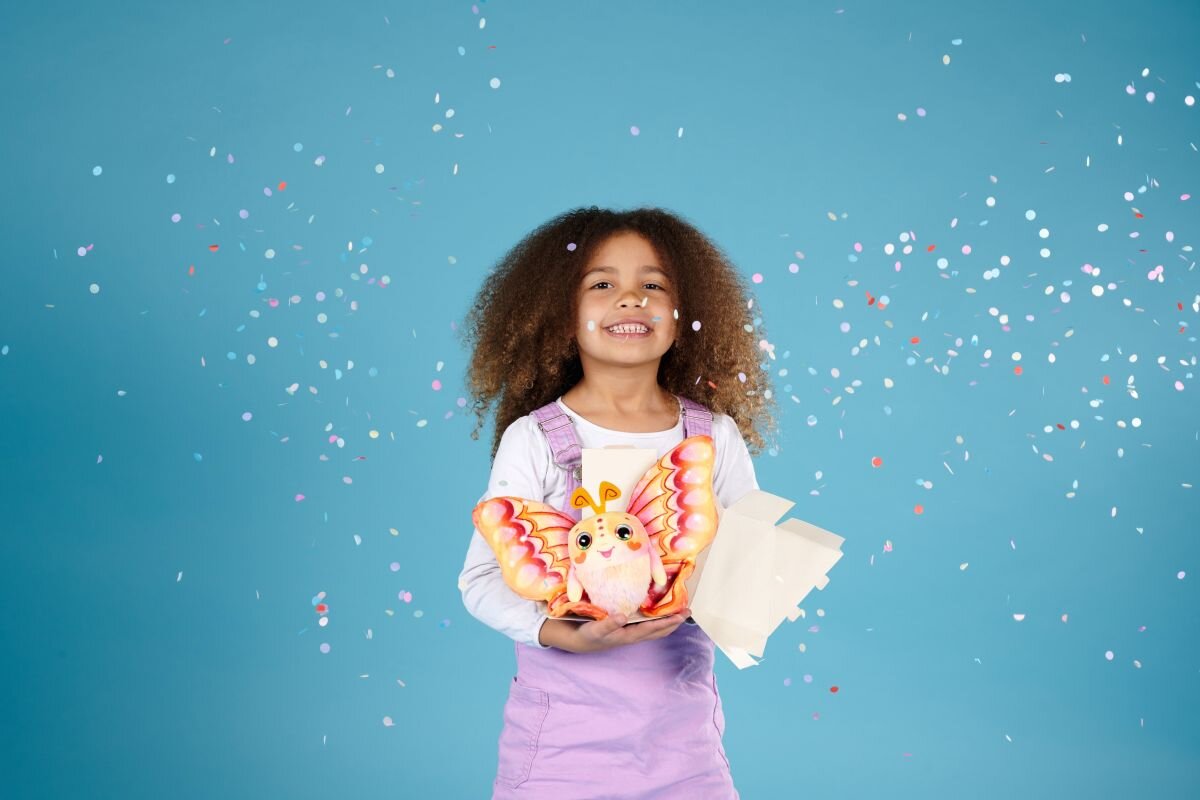 Lehce nadýchaní Fluffyfly motýlci se rozvinou přímo z obalu v doprovodu konfet: stačí nafouknout křídla, která se roztáhnou! Materiál tělíčka je jako dělaný k mazlení, ve 4 barevných provedeních s duhovýma očičkama. Chytré poutko k zavěšení.