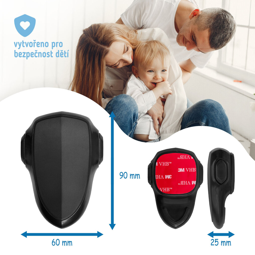 Bezpečnostní zařízení se snadno montuje, nevyžaduje žádné odborné znalosti ani nářadí. Stačí jen řádně připravit místo, kam chcete zámek umístit – ujistěte se, že je povrch čistý a suchý, poté jednoduše odlepte lepící kryt a připevněte na vyznačené místo. Přitiskněte a počkejte, dokut lepidlo řádně nepřilne – obvykle to trvá 24-48 hodin.