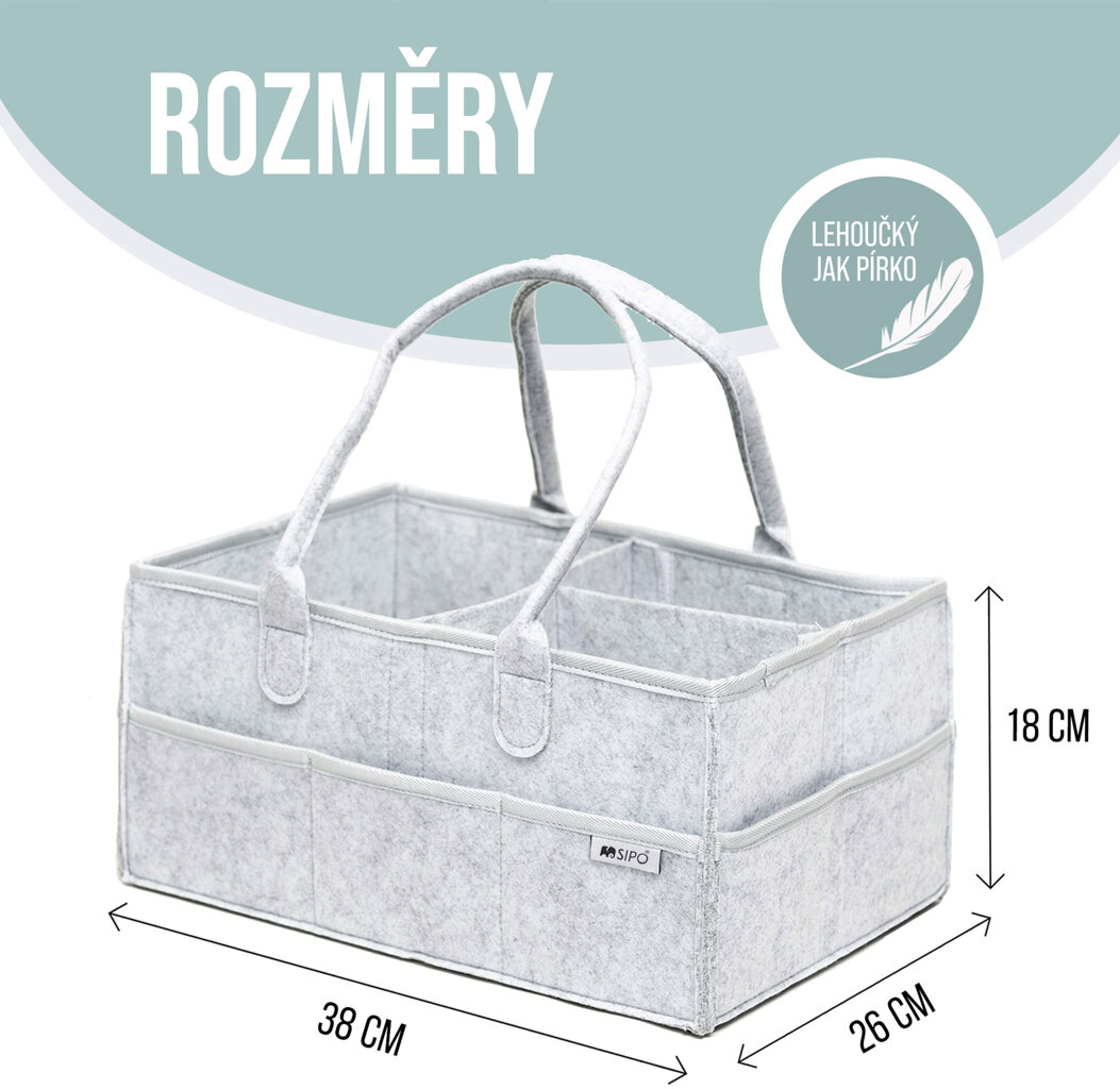 Dobře víme, že v případě výrobků vytvořených s ohledem na mladé maminky záleží nejen na funkčnosti, ale také na kvalitě použitých materiálů. Proto je organizér na pleny Sipo XL vyroben ze 100% ekologické a pro děti bezpečné plsti. Navíc jsme každý okraj organizéru zajistili ochrannou stuhou, která zároveň slouží jako dekorativní prvek. Díky speciální konstrukci je organizér Sipo bezpečný a zároveň zaručuje bezproblémové a dlouhodobé používání za všech podmínek.