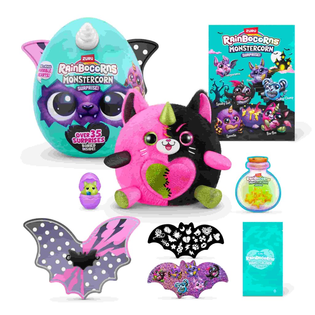 Nezapomeňte rozbít hrůzostrašné vajíčko Boo-boocorna a zjistěte, který strašidelný kamarád se skrývá uvnitř vajíčka! Monstercorn i jeho strašidelná příslušenství navíc svítí ve tmě, takže se zábava nikdy nezastaví. Každý Monstercorn má na sobě srdíčko, které můžete přetřít rukou a odhalit, co miluje.